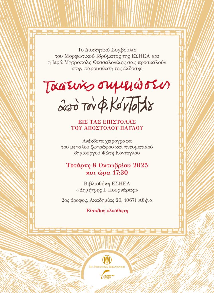 Παρουσίαση της έκδοσης “Φώτη Κόντογλου Ταπεινές σημειώσεις εις τας επιστολάς του Αποστόλου Παύλου” από το Μορφωτικό Ίδρυμα της ΕΣΗΕΑ και την Ιερά Μητρόπολη Θεσσαλονίκης //ΟΡΘΗ ΕΠΑΝΑΛΗΨΗ