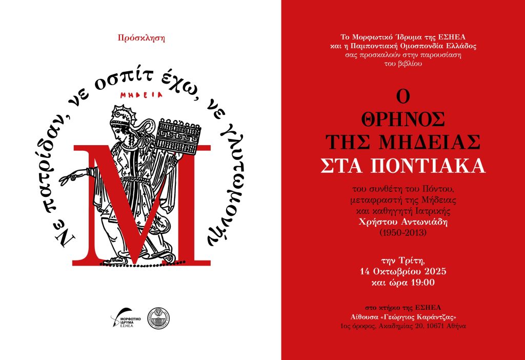 Το Μορφωτικό Ίδρυμα της ΕΣΗΕΑ και η Παμποντιακή Ομοσπονδία Ελλάδος πραγματοποιούν εκδήλωση αφιέρωμα στις αλησμόνητες πατρίδες και στον μεγάλο συνθέτη του Πόντου, μεταφραστή της Μήδειας και καθηγητή Ιατρικής Χρήστο Αντωνιάδη